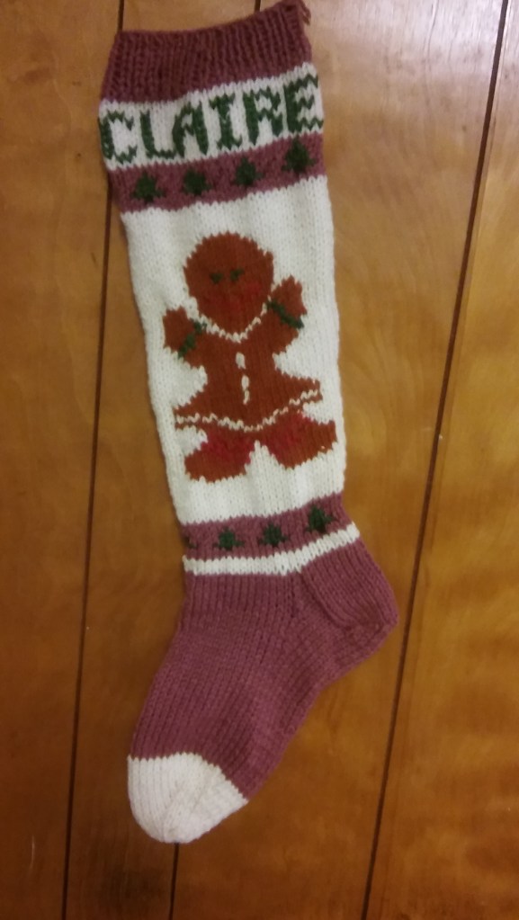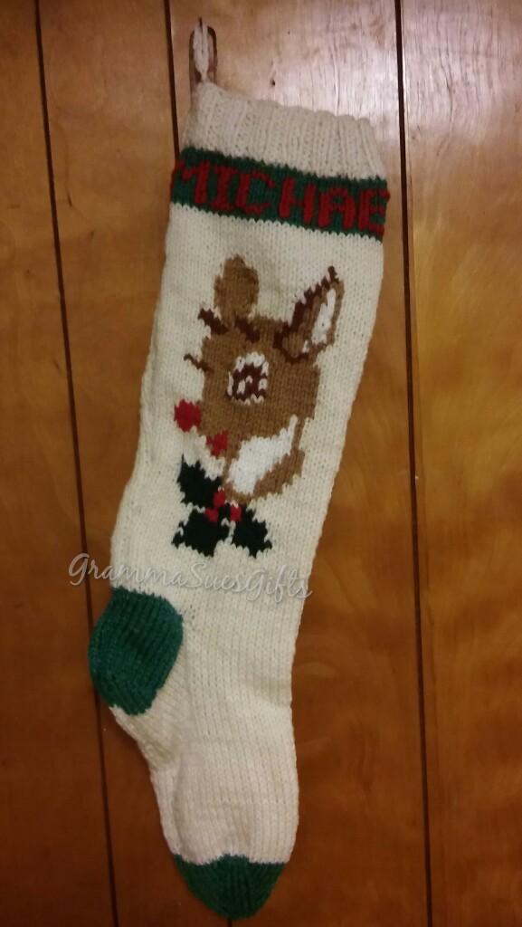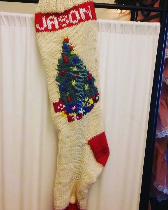 Seasonal $75 // Christmas Stockings. Hand knit by me, 24 inches long, but stretches as you add stuff. You will be able to fit lots of goodies for your little one. Free personalization, up to 7 letters. Share this: Click to share on X (Opens in new window) X Click to share on Facebook (Opens in new window) Facebook Like Loading...